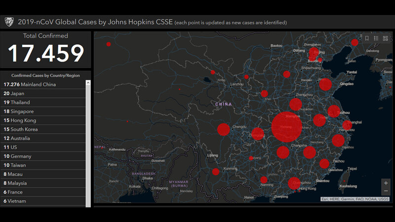 Die Seite von Johns Hopkins bietet einen guten Überblick über die weltweite Ausbreitung des 2019-nCoV (neuartiges Coronavirus).