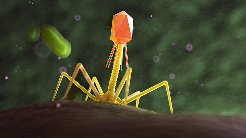 Bakteriophagen sind Viren, die Bakterien befallen. Sie dringen in die Bakterien ein und vermehren sich in ihnen. Die dabei neu entstehenden Viren befallen danach andere Bakterien. Dabei können die Bakteriophagen bakterielle Gene von einem Bakterium auf ein anderes übertragen. Dieser Prozess wird als Transduktion bezeichnet.