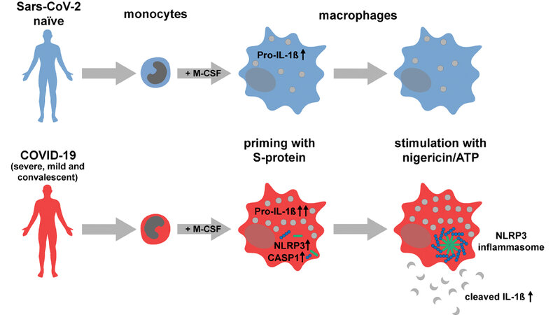Sebastian J Theobald, Alexander Simonis, Theodoros Georgomanolis, et al.: Long-lived macrophage reprogramming drives spike protein-mediated inflammasome activation in COVID-19. EMBO Mol Med (2021)e14150, DOI: 10.15252/emmm.202114150.