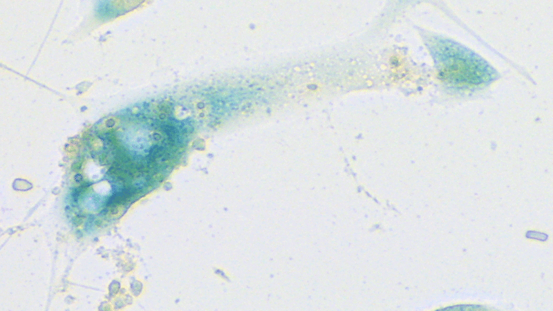 Zelluläre Seneszenz ist ein Gewebeschutzprogramm bei Stress und drohender Schädigung: Als programmierter Zellteilungsstopp bewahrt sie den menschlichen Körper davor, dass Krebs entsteht. Seneszente Zellen sondern außerdem entzündungsfördernde Botenstoffe ab, die für Prozesse wie die Wundheilung wichtig sind. Im Übermaß oder dauerhaft produziert, fördern diese Entzündungsvermittler allerdings altersbedingte Krankheiten wie Diabetes oder Gefäßverkalkung. Wenig beachtet waren bisher einzelne Hinweise darauf, dass auch eine virale Infektion Seneszenz auslösen kann. Wie ein Forschungsteam um den Onkologen Prof. Dr. Clemens Schmitt in einer aktuellen Studie zeigt, trägt dieser Prozess maßgeblich zu der lawinenartigen Entzündungskaskade bei, die Lungenschäden bei COVID-19 verursacht. „Diese entzündliche Überreaktion frühzeitig mit spezifischen Wirkstoffen zu unterbrechen, hat in unseren Augen großes Potenzial, eine neue Strategie zur Behandlung von COVID-19 zu werden“, sagt der Krebsmediziner.