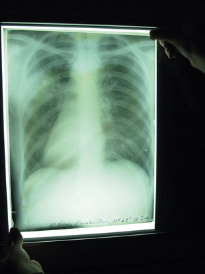 Ach, Entschuldigung! Es waren damals noch keine MTA. Sie wurden „Röntgenschwestern“, „Spezialschwestern“, „Röntgenassistenten“ genannt – diese Berufsbezeichnung war damals üblich. Wir haben die Platten zuerst katalogisiert und dank Prof. Dr. med. Gerald Antoch, Direktor des Instituts für Diagnostische und Interventionelle Radiologie und in seiner fachlichen Zuständigkeit, auch Ärztlicher Leiter der MTA-Schule, befunden können. Das waren zwei wertvolle Unterrichtsstunden von Prof. Antoch unter der aktiven Mitarbeit von Schülern/-innen, nicht zu vergessen die hervorragende Arbeit von denjenigen, die diese Röntgenaufnahmen angefertigt haben. Gemeint ist hier die ausgezeichnete Qualität dieser Aufnahmen, die auch selbst nach 100 bis 110 Jahren noch sehr gut ist! Und wie zu erwarten, war es keine Überraschung, dass dabei als Befund die Tuberkulose als Krankheitsursache auf den Bildern diagnostiziert wurde – die typische Erkrankung der damaligen Zeit.
