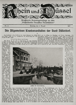 Die Zeitung „Rhein und Düssel“ von 1907 zur Eröffnung der Allgemeinen Krankenanstalten Düsseldorf | © Heinrich Heine Universität Düsseldorf