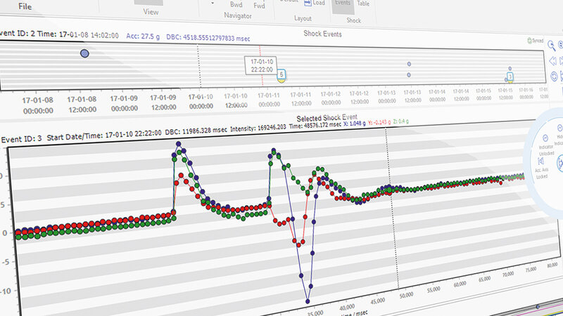 Frachtgüter unterliegen bei Transporten einer Vielzahl von äußeren Einwirkungen, durch die sie Schaden nehmen können. Bei einer Transport- und Logistikkette sollten daher Parameter wie Beschleunigungen, Schock-Ereignisse, Stöße und Vibrationen mittels Datenloggern erfasst und gespeichert werden. Aufzeichnungen können mit dem Mini-Datenlogger MSR165 durchgeführt werden. Die neue, äußerst intuitive MSR ShockViewer-Software stellt dann die oft sehr umfangreichen Aufzeichnungen übersichtlich dar. Ebenso können kritische Ereignisse rasch analysiert und beweiskräftig dokumentiert werden. Unterstützt durch ausgefeilte grafische Zoom- und Navigationsfunktionen wird die Auswertung zum Kinderspiel. So kann man die Daten jeder einzelnen Stoßbelastung präzise untersuchen, zum Beispiel zur Schadensermittlung im Versicherungsfall oder zur Optimierung von Gerätekonstruktionen und Transportverpackungen. Auch andere Umgebungsdaten wie Temperatur, Feuchte, Druck oder Licht können mit der MSR ShockViewer-Software betrachtet werden.