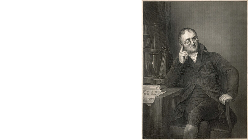 Was seinen Beitrag zur Atomtheorie angeht, ist John Dalton einer der Riesen, auf deren Schultern spätere Generationen mehr und weiter zu sehen imstande waren. Aber auch seine anderen Arbeiten, etwa die Formulierung der Partialdrücke von Gasen in einem Gasgemisch (Dalton-Gesetz), machen ihn zu einem Wegbereiter der modernen Chemie. Zudem beschrieb Dalton als Erster die Rot-Grün-Sehschwäche (Deuteranomalie), eine erbliche Farbfehlsichtigkeit, von der er selbst betroffen war.