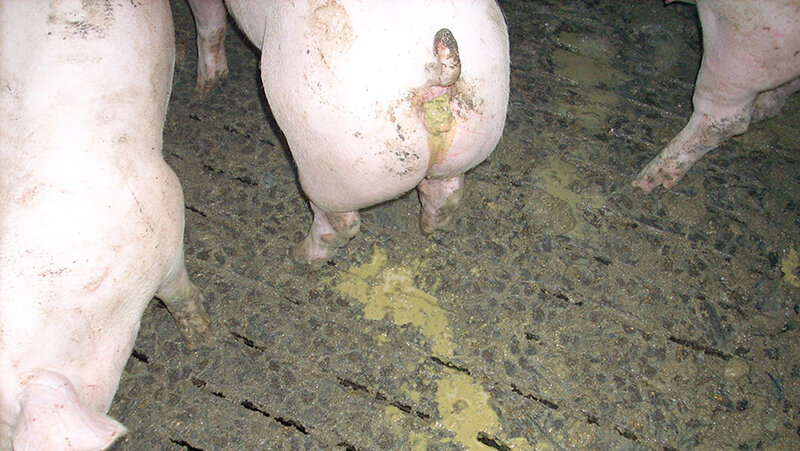 „Die Porzine Epizootische Diarrhoe (PED) ist eine akute, hochansteckende Darmerkrankung des Schweines, die eine hochgradige Enteritis, Diarrhoe, Erbrechen und Dehydration bedingt. Die Mortalität kann vor allem in Saugferkeln sehr ausgeprägt sein.“([3], Seite 1174, Zeile 1–5)
