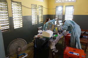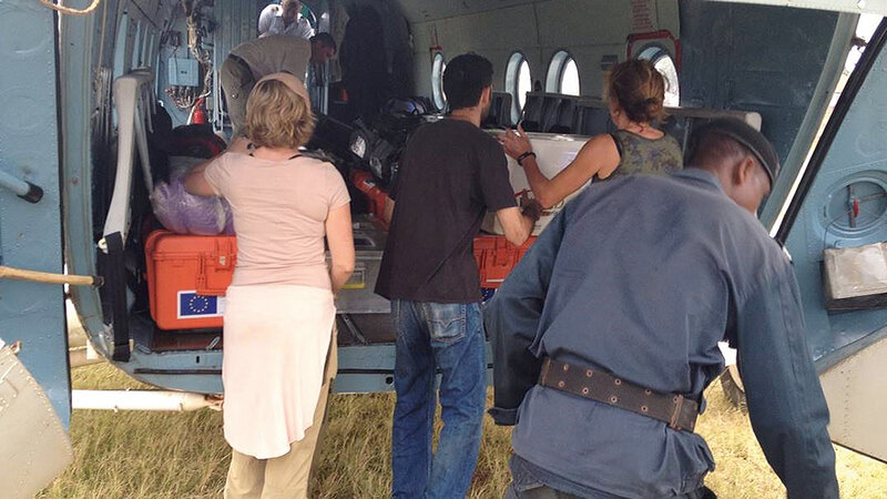 Je nach Probenanzahl/Probenaufkommen pro Tag arbeiten die Kollegen in den EMLab-Teams viele Stunden an der Glovebox. Regelmäßige Pausen sind notwendig, die Temperaturen in geschlossenen Räumen in Afrika können oft über 30° C sein.