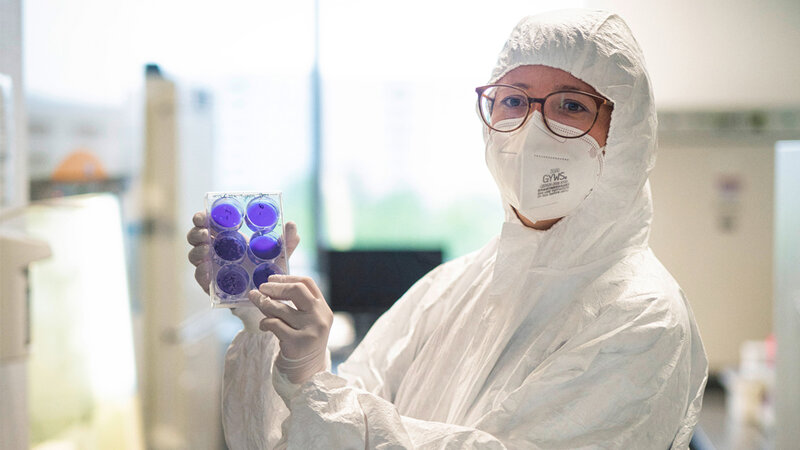 „Wir werden im Bereich der Virusdiagnostik arbeiten, die Reaktion des infizierten Körpers auf die Erreger weiter erforschen und nach neuen Wirkstoffen und Ansätzen für die Therapie von COVID-19 suchen“, fasst Dr. Stefanie Deinhardt-Emmer das Forschungsprogramm zusammen. Die Ärztin koordiniert das Verbundprojekt und arbeitet am Institut für Medizinische Mikrobiologie des UKJ, das vor allem an der Entwicklung einer standardisierten Probenvorbereitung, einer robusten molekularen und biochemischen Analytik für Viruspartikel und der Etablierung biologischer Modellsysteme für Virusinfektionen beteiligt ist.