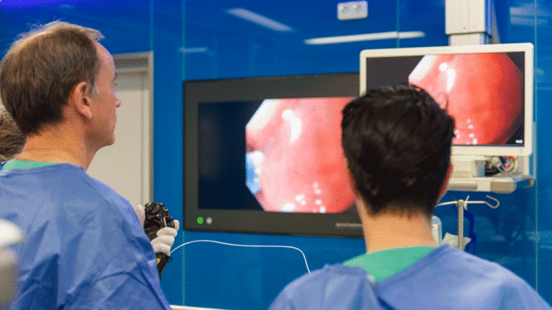 Auf dem 20. Endoskopie Symposium in Düsseldorf können Teilnehmer diesen patientenschonenden Eingriff per Direktübertragung aus dem EVK live mitverfolgen. Zusammen mit dem ESD-Experten Prof. N. Yahagi von der Keio Universität in Tokio entfernt das Team von Prof. Neuhaus ein Magenkarzinom im frühen Stadium mithilfe der ESD. Dank der minimalinvasiven Methode kann der 51-jährigen Patientin mit großer Wahrscheinlichkeit eine operative Entfernung des Magens erspart bleiben.