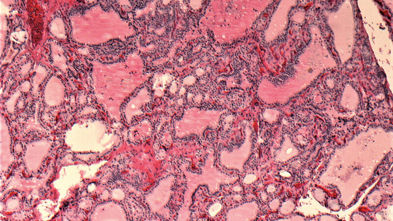 Neben den bereits erwähnten Schilddrüsenerkrankungen können in der Schilddrüse auch benigne und maligne Tumoren entstehen. Das papilläre Schilddrüsenkarzinom ist, außerhalb der Struma-Endemiegebiete, mit 70–80 % der häufigste maligne Tumor in der Schilddrüse. Zur Unterscheidung, um welche Art von Tumor es sich handelt und ob es wirklich ein primärer Schilddrüsentumor ist, ist das histologische Bild dieses Tumors das erste ausschlaggebende Kriterium. Der Einsatz der Immunhistochemie zur Differenzialdiagnose ist aus der Routinediagnostik nicht mehr wegzudenken. Die Molekularpathologie spielt ebenfalls immer häufiger eine wichtige Rolle bei der Diagnose und der Therapie.