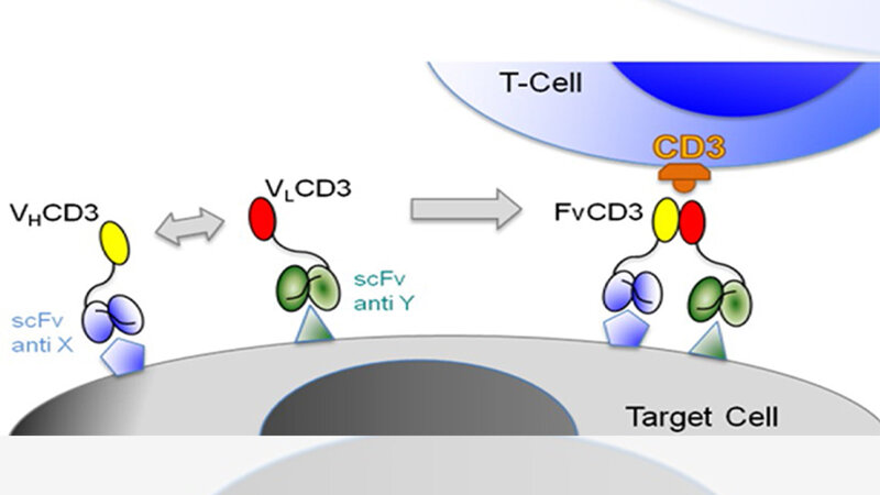 Bereits seit 2005 arbeitet ein Team um die Würzburger Mediziner Professor Gernot Stuhler und Dr. Thomas Bumm an einer neuartigen Immuntherapie gegen Krebs. Im Mittelpunkt stehen Fragmente von Antikörpern, sogenannte Hemibodies, die mit höchster Präzision zwischen Tumorzellen und gesundem Gewebe unterscheiden können. Konkret handelt es sich um jeweils zwei Antikörperfragmente, die auf der Oberfläche der Tumorzellen zu einer funktionalen Einheit zusammenfinden. Erst in dieser Form erlangen sie die Eigenschaft, das Immunsystem zur Zerstörung der bösartigen Zellen zu stimulieren.