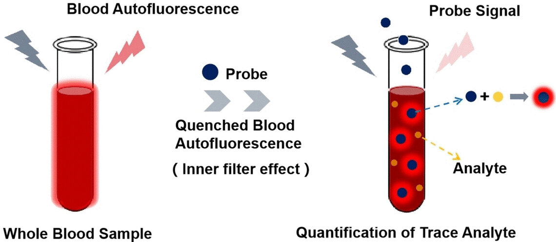 Besonders leistungsfähig für die Untersuchung von Biomolekülen sind Fluoreszenztests. Sie sind kostengünstig, wenig aufwändig, hochsensitiv und ermöglichen Echtzeit-Messungen. Bisher ist das Problem, dass Spurenbestandteile nicht mit Vollblutproben erfolgen können, da Blut selbst sehr stark fluoresziert. Damit werden die nur schwachen Signale überdeckt. Vollblut wird daher zentrifugiert und nur das Plasma untersucht. So nimmt aber der Gehalt instabiler Bestandteile sowie von Gasmolekülen ab, die Ergebnisse sind ungenau.