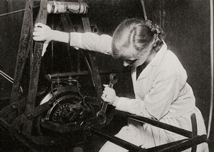 Abb. 3: Ausbildung zur Röntgenschwester. „Auch kleinere Schlosserarbeiten muß (sic!) die Laborantin gelegentlich ausführen können, wenn sie allen Anforderungen gerecht werden will.“ Aus: Die Woche 1928: 1281 | © Archiv Deutsches Röntgen-Museum. Mit freundlicher Genehmigung