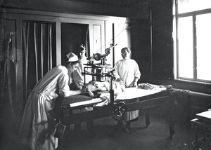 Abb. 6: Uterustherapie an der Universitäts-Frauenklinik in Erlangen um 1920 | © Archiv Deutsches Röntgen-Museum. Mit freundlicher Genehmigung