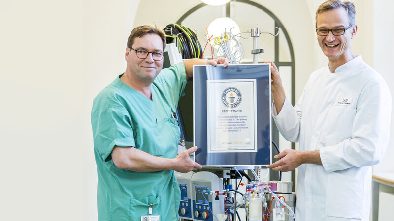 Hinter diesem exotisch klingenden Weltrekord stehen jahrzehntelange Entwicklungsarbeit und die Möglichkeit, komplizierte Herzoperationen an Neugeborenen ohne Fremdblut-Konserven durchführen zu können. Die hat für die Babys erhebliche Vorteile. Komplexe angeborene Herzfehler müssen meist sehr bald nach der Geburt operiert werden. Dabei wird das Herz vorübergehend stillgelegt und eine Herz-Lungen-Maschine (HLM) eingesetzt.