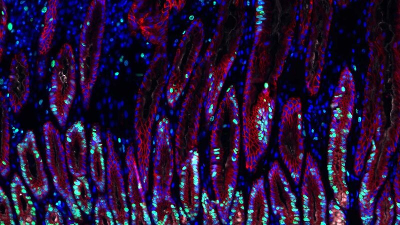 Um die Veränderungen der Magendrüsen durch eine Helicobacter-Infektion nachzuverfolgen, hat sich das Forschungsteam zusammen mit Wissenschaftlerinnen und Wissenschaftlern am Max-Planck-Institut für Infektionsbiologie komplexe Mausmodelle zu Nutze gemacht, bei denen sich bestimmte Zellen der Magendrüsen mittels modernster Technologien – wie Bildgebung und Einzelzellsequenzierung am Gewebe – visualisieren, isolieren und genau untersuchen lassen. Darüber hinaus entwickelten sie im Labor spezielle organähnliche Mikrostrukturen – sogenannte Organoide –, um damit den Einsatz von Tiermodellen einschränken zu können. Mithilfe dieser winzigen Miniaturmägen konnten sie viele Eigenschaften der Drüsen nachempfinden und den Einfluss vielfältiger Signale auf die dortigen Stammzellen untersuchen, aus denen verschiedene Zelltypen entstehen können.