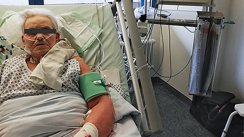 Bemerkung zu Abbildung 5: In unserem heutigen Gesundheitssystem hat jeder Patient ein Recht auf adäquate medizinische Behandlung. Wir haben erstmals das „Recht auf Gesundheit“ proklamiert. Besonders der „alte Mensch“ darf davon nicht ausgeschlossen werden, und die Entscheidung kann nur heißen: „In dubio pro vita“ (Im Zweifel für das Leben). Hier stellt sich die dringende Frage: Mit allen uns bekannten, negativen Erscheinungen in der „High-tech-Medizin“? Je künstlicher und komplizierter die Verhältnisse, Apparate und Medikamente, umso eher droht intensivmedizinische Multimorbidität, das heißt, wenn sich zum psychischen, polytechnischen und mikrobiellen Hospitalismus (Krankenhausinfektion) auch noch der multimedikamentöse hinzugesellt, ein Kranksein, bedingt durch die Arzneimittel [26], die Krux der modernen Krankenhausmedizin; das Leiden an der Krankheit. Die Kehrseite ihrer paradoxen Wirksamkeit ist, die sie behandelt, zeichnet und schädigt. Das Überleben bedeutet die Abhängigkeit des Kranken zwischen Körpermaschinen, Körper und künstlichem Leben [34]!