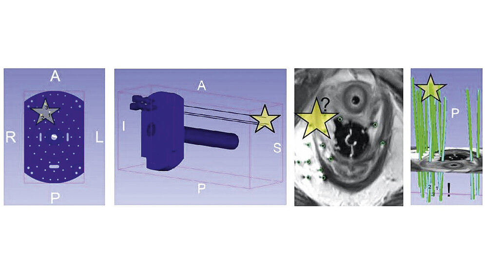 Am Institut für Medizinische Informatik der Universität zu Lübeck arbeiten Wissenschaftler in Zusammenarbeit mit dem Brigham and Women’s Hospital der Harvard Medical School daran, Katheterinterventionen durch Kathetersegmentierungsalgorithmen für die Brachytherapie bezüglich der lokalen Dosisapplikation zuverlässiger zu gestalten. Brachytherapie ist eine Form der Strahlentherapie, bei der eine umschlossene radioaktive Strahlenquelle innerhalb oder in unmittelbarer Nähe des zu bestrahlenden Gebietes im Körper platziert wird. Im Rahmen des geförderten Projektes „NeedleFinder“ werden Methoden für die hochgenaue und präzise Segmentierung der Katheterpfade entwickelt. Sie ermöglichen es, während der Operation im MRT-Bild die den Tumor treffenden Pfade den Öffnungen einer Syed-Neblett-Schablone zuzuordnen. Dies ist für die fehlerlose Dosierung der durch die Schablone und die anliegenden Pfade eingeführten Strahlenquellen von zentraler Bedeutung. Die Deponierung der Strahler geschieht intraoperativ, bildgestützt, den Tumor sehend und gegebenenfalls unter mehrfacher Nutzung der angelegten Katheterpfade. Die Arbeiten wurden 2014 begonnen.