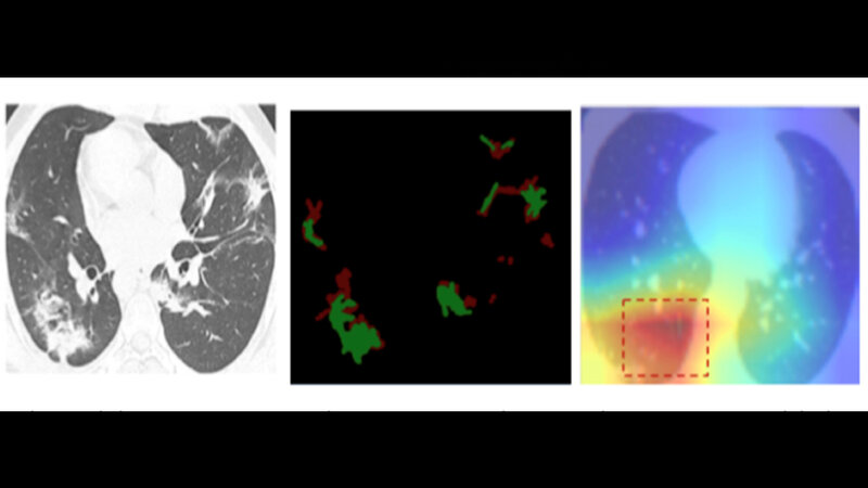 Die hinterlegte Abbildung zeige den CT-Scan einer Lunge (links), der durch das Verfahren der automatischen Bilderkennung analysiert wird. Zudem können Patientinnen und Patienten durch eine sogenannte Milchglastrübung (Mitte) auf akute und chronische Krankheiten untersucht werden. Auf einer sogenannten Heatmap (rechts) markiere das KI-System schließlich den Bereich, auf dem die Entscheidung basiert. Die visuelle Erklärung des Assistenzsystems habe zum Ziel, die Diagnose nachvollziehbarer zu machen und Medizinerinnen und Medizinern wichtige Einsichten zu liefern: Die automatische Bilderkennung mit hoher Präzision helfe, die Infektion einzuschätzen und die Behandlung zu planen. Gerade bei Engpässen in der medizinischen Versorgung könne diese Entscheidungshilfe ein bedeutender Vorteil ein, so die Wissenschaftler.