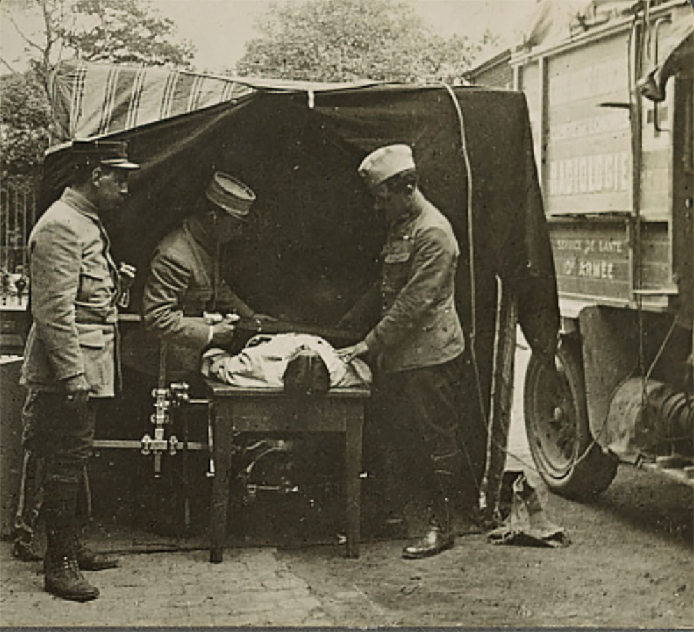 Abb. 2: Französisches Feldlazarett, Ortung der Kugel mit einem Röntgengerät | © Meadville, Pa.; New York, N. Y.; Chicago, Ill.; London, England: keystone view company, photographed between 1914 and 1918, published 1923, Photograph. www.loc.gov/item/2015652180