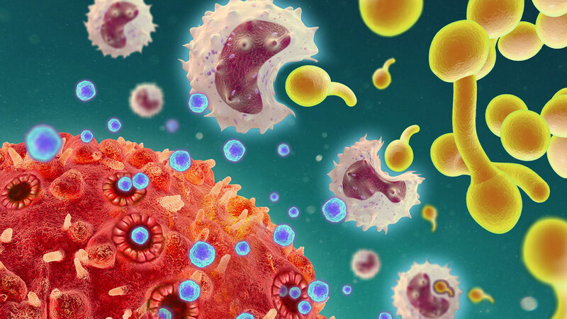 T-Zellen gehören zum adaptiven Immunsystem, das körperfremde Antigene erkennt und Krankheitserreger gezielt bekämpft. Verschiedene T-Zellen üben dabei unterschiedliche Funktionen aus. Sogenannte T-Helferzellen schütten Zytokine aus, die weitere Immunzellen zum Infektionsherd locken und dort eine Entzündung auslösen. T-Helferzellen können aber auch einer Entzündung entgegenwirken. Diese Mechanismen besser zu verstehen hilft bei der Entwicklung von Therapeutika gegen Krankheitserreger oder Autoimmunerkrankungen.