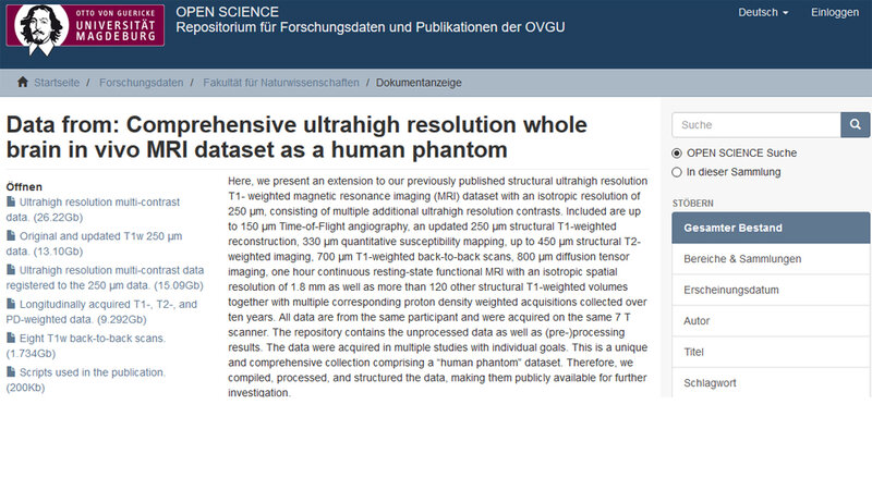 Wissenschaftler der Otto-von-Guericke-Universität Magdeburg sammelten über 10 Jahre mittels Magnetresonanztomografie (MRT) Bilddaten von Gehirnstrukturen eines einzelnen Probanden mit der bisher höchsten räumlichen Auflösung, die je an einem lebenden Probanden gemessen wurde. Einen ersten 2017 publizierten ultra-hochaufgelösten Datensatz erweitern die Forschenden mit einer erneuten Veröffentlichung und stellen damit diese einzigartigen Datensätze weltweit Wissenschaftlerinnen und Wissenschaftlern sowie der allgemeinen Öffentlichkeit für Forschungszwecke und darüber hinaus frei zur Verfügung.