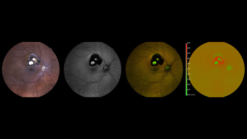 Das Team evaluierte die farbkodierte Fundus-Autofluoreszenz (Spectrally Resolved Autofluorescence Imaging). Die Firma CenterVue (iCare) aus Padua (Italien) stellte den Wissenschaftlern das neuentwickelte Gerät für die Untersuchungen zur Verfügung. Dabei wird die Netzhaut mit bläulichem Licht beleuchtet. Die Netzhaut nimmt das Licht auf und strahlt es mit veränderter Wellenlänge wieder ab. Diese Fluoreszenz misst das Gerät und zerlegt die Signale in einen grünen und einen roten Anteil.