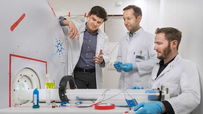 Dann muss alles sehr schnell gehen: Der Biosensor wird intravenös in den zu untersuchenden Organismus gespritzt. Für die Aufnahme mit dem MRT-Gerät bleiben gerade einmal 60 Sekunden, bevor der signalverstärkende Effekt durch die Hyperpolarisation wieder abgeklungen ist. „Wir arbeiten derzeit daran, dieses Zeitfenster zu vergrößern“, sagt Düwel. „Dabei versuchen wir zum einen, die MRT-Eigenschaften von Zymonsäure durch geeignete Veränderungen an dem Molekül zu verbessern, und zum anderen, weitere pH-sensitive Moleküle zu finden“, erläutert der Biochemiker Christian Hundshammer, Zweitautor der Studie.