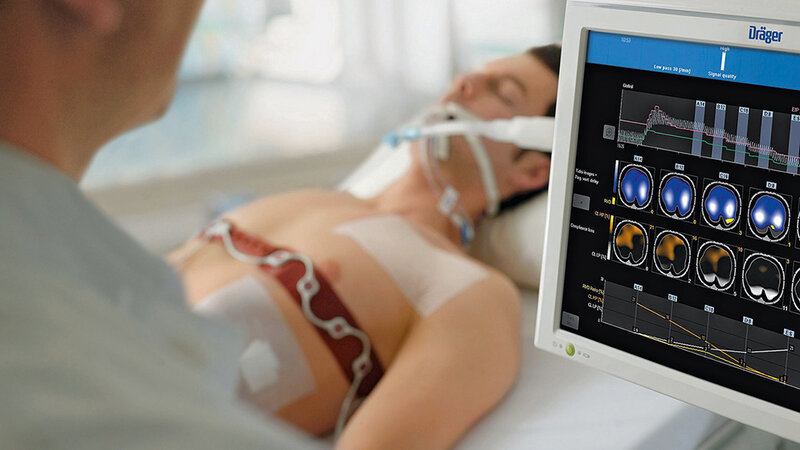 Bisher konnte am EIT-Gerät erkannt werden, wie erfolgreich der jeweilige Versuch war, die Lunge mit einem veränderten PEEP offen zu halten. Dadurch konnte er für eine möglichst gleichmäßige Belüftung der Lungenareale sorgen. „Diagnostic View“ führt nun laut Hersteller noch einen Schritt weiter vom Beobachten hin zum Analysieren und Dokumentieren: Mit dieser neuen Funktion könne nun direkt angezeigt werden, ob Lungenareale bei einem bestimmten PEEP zu kollabieren oder aber zu überdehnen drohen. Orange eingefärbte Regionen stehen dabei für eine sinkende Compliance durch zu hohe Druckwerte und weisen auf eine beginnende Überdehnung hin. Weiß eingefärbte Bereiche dagegen kennzeichnen ein wachsendes Risiko für Kollabieren. Die Software hilft so, den für den jeweiligen Patienten am besten geeigneten PEEP am Beatmungsgerät individualisiert einzustellen. Das Software-Update des PulmoVista 500 wartet darüber hinaus mit einigen Neuerungen auf. Die Funktion „Enhance Contrast“ zeigt jetzt per Tastendruck unmittelbar violett eingefärbte Bereiche an, die einerseits eine wichtige Hilfestellung bei der Wahl der korrekten Gürtelposition geben. Andererseits können sie in typischen Lungenarealen auf Flüssigkeitsansammlungen hinweisen. Zudem wurde die Anzeige der Trenddaten „End-Insp.Trend“ und „ΔEELI Trend“ flexibler gestaltet, was beispielsweise einen Wechsel der ROI (Regions of Interest) oder das Heranzoomen („Zoom“) kurzzeitiger Therapieabschnitte während eines längeren Messvorgangs ermöglichen soll. Ihren diagnostischen Anspruch unterstreicht die neue Software 1.2 auch mit der Bestimmung des RVD-(Regional Ventilation Delay-) Indexes. Dieser Wert beruht auf der wissenschaftlichen Annahme, dass ein beim Einatmen verzögertes Füllen einzelner Lungenareale auf ein zyklisches Öffnen und Schließen hinweist.