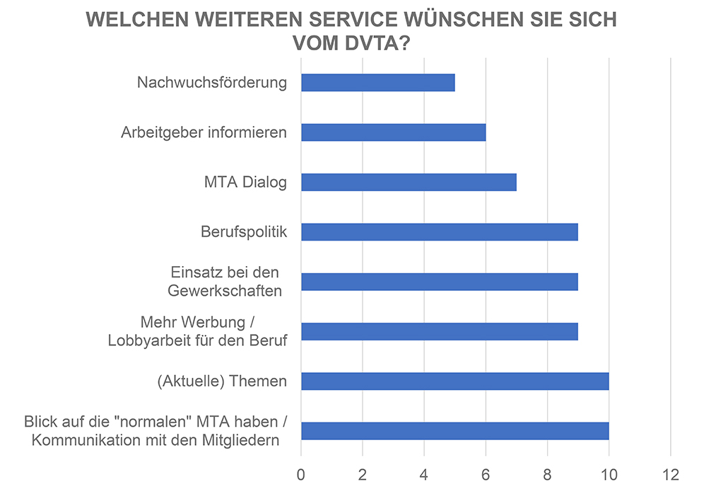 Weitere Informationen zur Auswertung der Umfrage finden Sie auf unserer Homepage unter: dvta.de/der-dvta/statistiken-zu-mta-berufen.