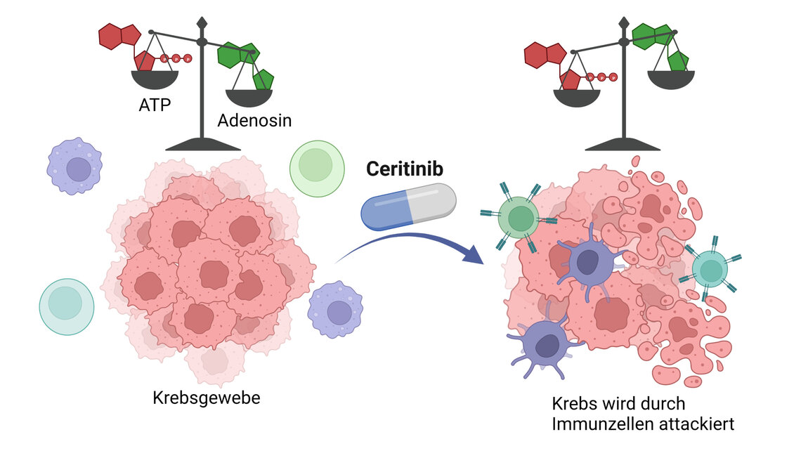 Zu Beginn der Studie gab es insgesamt 50 verschiedene Wirkstoffe, die für die Hemmung von Proteinkinasen bei bestimmten Erkrankungen zugelassen waren. Die Arbeitsgruppe untersuchte sämtliche von ihnen. Es gab einen Treffer. „Eine der Substanzen, das Ceritinib, blockiert auch die Umsetzung von ATP durch CD39“, freut sich Schäkel. „Das konnten wir nicht nur im Reagenzglas zeigen, sondern auch in Kulturen mit sogenannten dreifach-negativen Brustkrebszellen. Diese sind extrem schwer zu behandeln - sie sprechen normalerweise kaum auf Therapien an.“