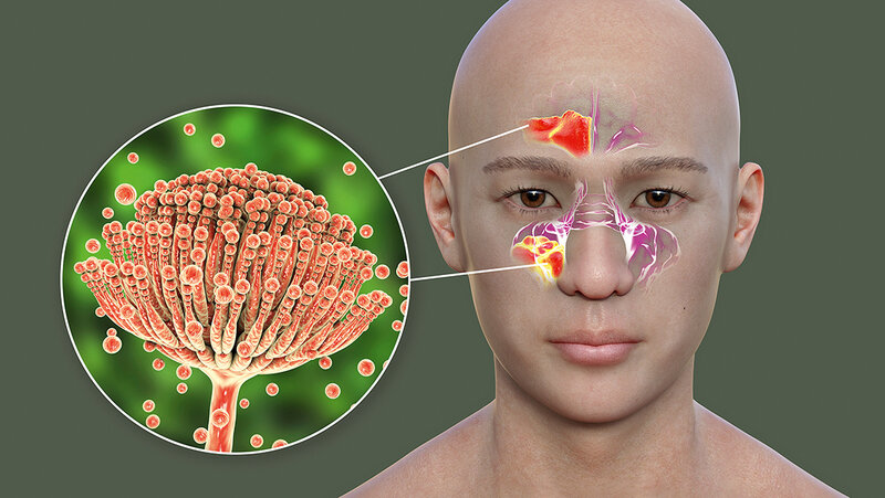 Vor allem einige Schimmelpilze enthalten Antigene, die speziell bei atopischen Patienten eine Typ-I-Allergie, bedingt durch IgE, auslösen. Alternaria spp. und Cladosporium spp. dominieren. Ein Pilz kann mehrere Allergene mit jeweils unterschiedlicher allergener Potenz produzieren. Da diese Pilze ubiquitär sind, kann man die Exposition nicht immer vermeiden. Zur Diagnose gehört der Labornachweis von spezifischen Antikörpern der Klasse IgE im Serum gegen bekannte, starke allergene Epitope von den diversen Pilzen. Mit Kreuzreaktionen muss man rechnen. Eine Besonderheit ist die allergisch bronchopulmonale Aspergillose (ABPA). Bei manchen vorgeschädigten Patientinnen und Patienten, zum Beispiel mit Mukoviszidose, können inhalierte Konidien von Aspergillus fumigatus in der Lunge auskeimen und eine lokale Entzündung hervorrufen. Die Betroffenen reagieren dann mit der Bildung von IgE- und IgG-Antikörpern (Typ-III-Allergie) gegen bestimmte Aspergillus-Allergene.