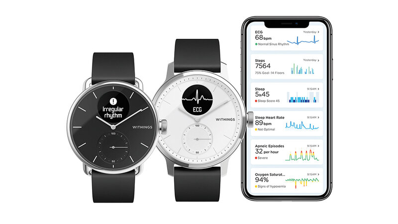 Mit einer Batterielaufzeit von 30 Tagen ist ScanWatch ebenfalls im analogen Design der früheren Hybriduhren von Withings gehalten und wurde mit verbesserten Designelementen ausgestattet. ScanWatch verfügt über ein größeres Digital-Display als die Vorgängermodelle sowie über eine verbesserte Navigation durch die neu gestaltete Krone. Mit der ScanWatch kann die Herzfrequenz auch kontinuierlich überwacht werden. Mittels SpO2-Sensor, der eine Lichtwelle durch Blutgefäße sendet und absorbiert, soll die Hybrid Smartwatch zudem nächtliche Schlafapnoe-Episoden erkennen. Darüber hinaus soll die ScanWatch eine fortschrittliche Schlafüberwachung und Analyse von Schlafmustern, einschließlich der Länge, Tiefe und Qualität des Schlafes bieten. Die neue Hybrid Smartwatch von Withings soll im zweiten Quartal 2020 in zwei verschiedenen Größen erhältlich sein (38 mm für 249 Euro und 42 mm für 299 Euro). ScanWatch wird derzeit auf CE- und FDA-Zulassung überprüft.