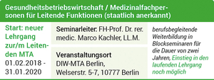 Um dringend erforderliche Entwicklungen eines professionellen Personalmanagements im Gesundheitswesen zu befördern, sind deswegen vor allem Weiterbildungen vonnöten, die den Angehörigen der darin agierenden unterschiedlichen Berufsgruppen dessen ganzheitliche systemische Zusammenhänge erkennbar machen. Hier geht es vor allem darum, Analyse-, Steuerungs- und Entscheidungstools zu erwerben, damit in naher Zukunft eine erlösorientierte Personal- und Unternehmensführung gewährleistet werden kann. Das bedeutet, immer mehr Mitarbeiter/-innen in Führungsverantwortung dahingehend zu professionalisieren, dass sie künftig in der Lage sein werden, Investitionen in die Gestaltung von Arbeitsbedingungen, die qualitative Entwicklung und quantitative Investitionsplanung ihres Personals sowie die sachgerechte Personalauswahl und Gestaltung von Arbeitsbeziehungen maßgabengerecht zu planen, zu entscheiden und umzusetzen. Dazu leistet das Deutsche Institut zur Weiterbildung für Technologen/-innen und Analytiker/-innen in der Medizin e.V. (DIW-MTA) einen wichtigen Beitrag. Auch 2018 und mit dem staatlich anerkannten Lehrgang „Gesundheitsbetriebswirtschaft/Medizinalfachpersonen für leitende Funktionen“ gibt es wieder eine große Anzahl von Seminaren, die Interessenten/-innen in den für ein professionelles Personalmanagement erforderlichen betriebswirtschaftlichen Kompetenzen weiterbilden.