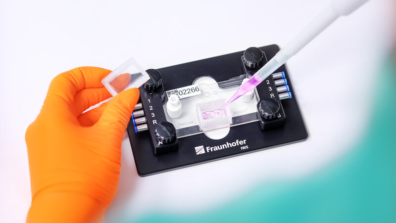 Bereits seit über zehn Jahren beschäftigen sich die Forscherinnen und Forscher am Fraunhofer IWS mit den Mini-Laboren. Mit diesen mikrophysiologischen Systemen im Format einer Tablettenschachtel lassen sich Organfunktionen oder auch Krankheitsprozesse mit Hilfe von Zellkulturen künstlich darstellen. Ventile und Kanäle simulieren das Gefäßsystem, eine kleine Pumpe den Herzschlag. Gefertigt werden die mikrophysiologischen Systeme aus übereinander geschichteten Kunststofffolien. In diese werden mittels Laser Blutbahnen und Kammern geschnitten. In speziellen Modulen legen die Anwender später Zellkulturen an, die bis zu einem Monat in den Mikrosystemen überleben können. In dem Miniatur-Labor zirkuliert derweil das Blut in Form von Nährmedium, das die Zellen mit Sauerstoff und Nährstoffen versorgt. Vor ein paar Jahren noch war in diesem Rahmen lediglich die Darstellung zweier Organe möglich. Heute sind es bereits vier, die sich gleichzeitig auf diesen neuartigen Multiorgan-Chips simulieren lassen.