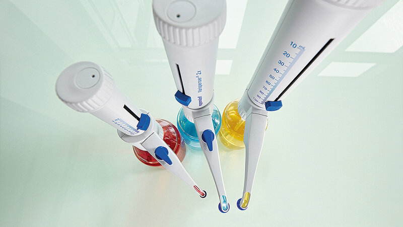 Eppendorf als Spezialist für Liquid-Handling-Labor-Produkte hat in dem Varispenser 2 und Varispenser 2x die bewährte Qualität und Technik der Vorgängermodelle in vielen Details noch einmal verbessert. Das bewährte Direktverdrängerprinzip sorgt für die nahezu rückstandslose Wiedergewinnung von Reagenzien. In Kombination mit der hohen chemischen Beständigkeit aller Bestandteile, die mit aggressiven Flüssigkeiten in Berührung kommen, können Varispenser 2 und Varispenser 2x mit nahezu allen im Labor üblichen Flüssigkeiten verwendet werden. Zubehör wie ein leicht aufzusetzendes Trockenrohr, ein Filter oder auch ein flexibler Ausstoßschlauch ermöglichen ein breites Spektrum an Dispensiermöglichkeiten. Alle Geräte sind mit dem Standardgewinde GL 45 ausgestattet und mit den im Lieferumfang enthaltenen zusätzlichen Adaptern können nahezu alle Gewindearten, die im Labor zur Anwendung kommen, bestückt werden. Das oval geformte Gehäuse, der neu gestaltete Schieberegler und der neu gestaltete Ventilknebel beim Varispenser 2x unterstreichen die Modernität der Geräte und optimieren gleichzeitig das Handling.