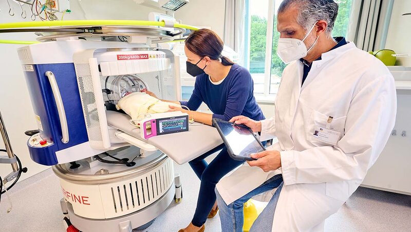 In der Neonatologie des Universitätsklinikums Bonn (UKB) wird deutschlandweit erstmals einen mobilen MRT (Magnetresonanztomograph) zur Diagnostik bei Früh- und Neugeborenen eingesetzt. Die mobile Bildgebung verbessert die Diagnostik und Therapie für Patientinnen und Patienten bahnbrechend.
