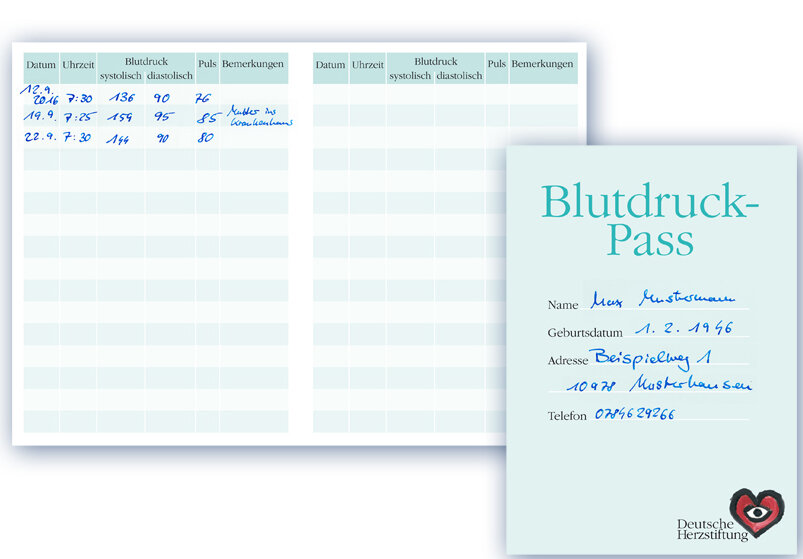 Kardiologen raten zum Blutdruck-Pass: Der kostenfreie Blutdruck-Pass der Herzstiftung kann unter www.herzstiftung.de/Blutdruckpass.html – per E-Mail unter bestellung@herzstiftung.de oder telefonisch unter 069 955128-400 angefordert werden.