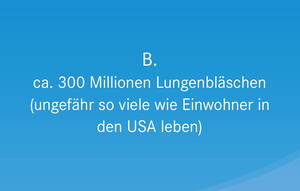 Richtig ist Antwort B. ca. 300 Millionen Lungenbläschen (ungefähr so viele wie Einwohner in den USA leben)