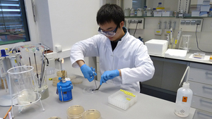 Neben der Alge selbst sind auch die mit ihr in Symbiose lebenden Pilze eine Quelle in der Wirkstoffforschung. Bicheng Fan (s. Bild), Doktorand bei Prof. Tasdemir, isolierte mehr als 120 symbiotische Pilze des Tangs. Bei näherer Untersuchung der Pilzgattung Pyrenochaetopsis sp. entdeckte er, dass der Pilz Hautkrebszellen effizient abtötet, aber gegenüber normalen Hautzellen eine geringe Toxizität zeigt. Er kann somit eine weiteren natürlichen Wirkstoff im Kampf gegen Hautkrebs liefern. Es ist bisher erst die zweite Studie zu dieser noch unerforschten Pilzgattung.