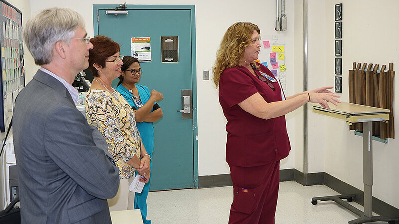 Scripps Health versorgt rund 700.000 Patienten. Der Konzern zählt zu den Top-15-Gesundheitsanbietern in den USA – unter anderem mit vier Krankenhäusern. Scripps ist der einzige Träger, der unter seinem Dach frei gemeinnützige und konfessionelle Kliniken betreibt. Beschäftigt werden etwa 15.000 Mitarbeiter. Elemente der Gesamtstrategie des Scripps Mercy Hospital sind: Respekt, Qualität, Zukunftssicherung und Wachstum. Diese Strategie wird in allen Teilbereichen und auf allen Ebenen vollständig implementiert. Auch wenn die Klinik noch nicht volldigitalisiert ist, so beeindrucken Aspekte wie Konsequenz und Transparenz. Die Wege, die hier ausgehend von einer Vision in die Umsetzung beschritten werden, gelingen auch mit einfachen Mitteln: beispielsweise über Boards und Hinweise an Zimmertüren. Sie sind für Mitarbeiter und Patienten gleichermaßen sichtbar. Besonders hilft dies auch den Mitarbeitern dabei, ihre Ziele zu fokussieren und ihre Aufgaben zu erledigen. Die Einfachheit, die Konsequenz und die Nutzung der neuen Technologien in Kombination mit dem Design der Entscheidungsprozesse: Davon können wir in Deutschland profitieren. Ein Beispiel betrifft auch die Radiologie: Das technische Personal (MTRA) arbeitet nicht nur in der eigenen Funktionsabteilung; in großen Kliniken gibt es Röntgengeräte und CTs in der Notaufnahme, zu denen täglich circa ein bis zwei Mitarbeiter „eingeteilt“ werden.