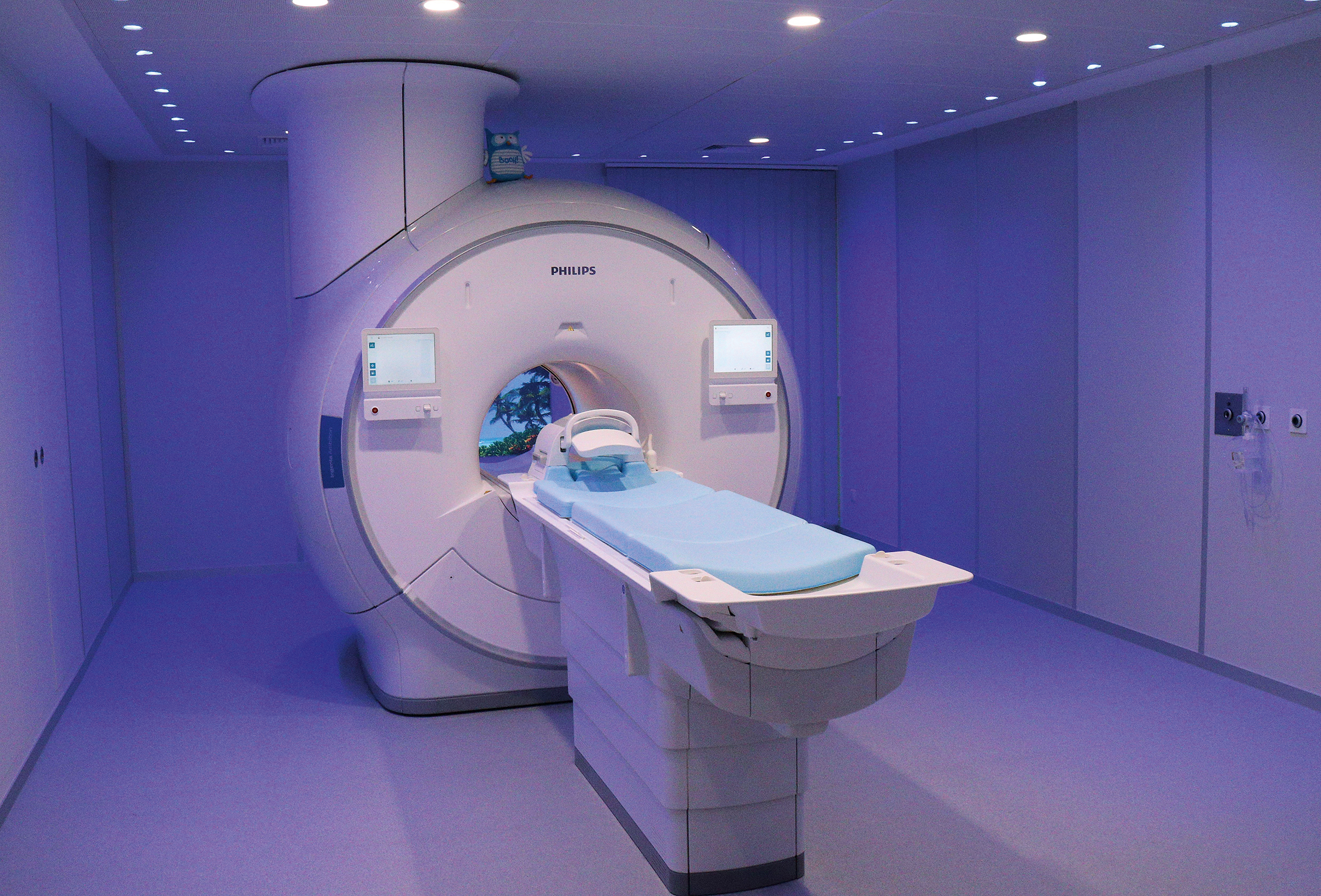 Das volldigitale 1,5-Tesla-System kann die Untersuchungszeit um die Hälfte verkürzen**, dies ermöglicht die Compressed SENSE Funktion, eine neue Beschleunigungstechnologie. Leider wurde die offene Bauweise zugunsten höherer Auflösungen und stabilerer Magnetfelder allgemein aufgegeben, sodass wir nur noch die Wahl zwischen konventionellen Tunnelsystemen hatten. Die Öffnung („Bore“) am neuen Gerät ist mit 70 cm Durchmesser besonders groß, sodass Platzangst von vornherein vermieden wird. Das Gerät bietet außerdem die Möglichkeit, dass die Kinder während der Untersuchung ein Video anschauen können. Dank dieser sogenannten In-Bore-Lösung ist die Compliance auch bei jüngeren Kindern deutlich höher und eine entspannte und ruhige Lagerung, die für hochauflösende Bilder notwendig ist, wird sehr oft ohne Sedierung erreicht. Mit dem Ingenia Ambition X haben wir umfangreiche patientenorientierte Hilfestellungen bekommen, die die „Angst vor der Röhre“ fast komplett reduzieren. Dies ist bei einem MRT-Gerät besonders wichtig, da die Patienten während einer Untersuchung länger in „der Röhre“ verbleiben müssen als es bei Untersuchungen im Computertomografen der Fall ist. Insgesamt stellt die hochmoderne Technik des Geräts einen Quantensprung zu herkömmlichen Magnetresonanztomografen dar. Ich freue mich sehr, dass wir als erste Kinderklinik in Europa einen Ingenia Ambition X MRT angeschafft haben.