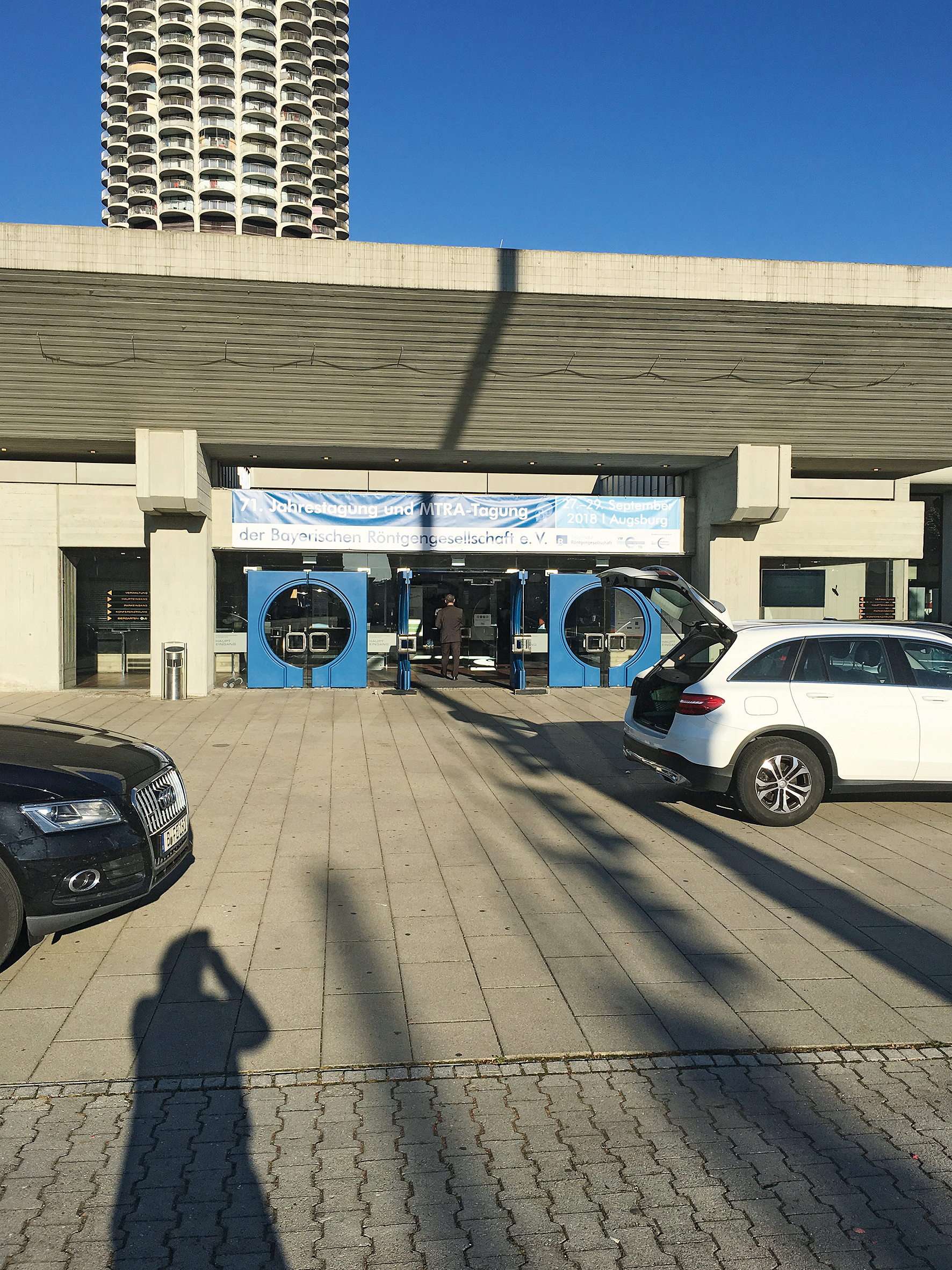 Das denkmalgeschützte Kongresszentrum war technisch auf dem neuesten Stand. Direkt an den Wittelsbacher Park angrenzend, in dem zahlreiche Gedenksteine an die Aufnahme von etwa 30.000 Vertriebenen durch die Stadt Augsburg in der Nachkriegszeit erinnern, konnte man die Kongresspausen für einen Spaziergang bei schönem Herbstwetter nutzen.