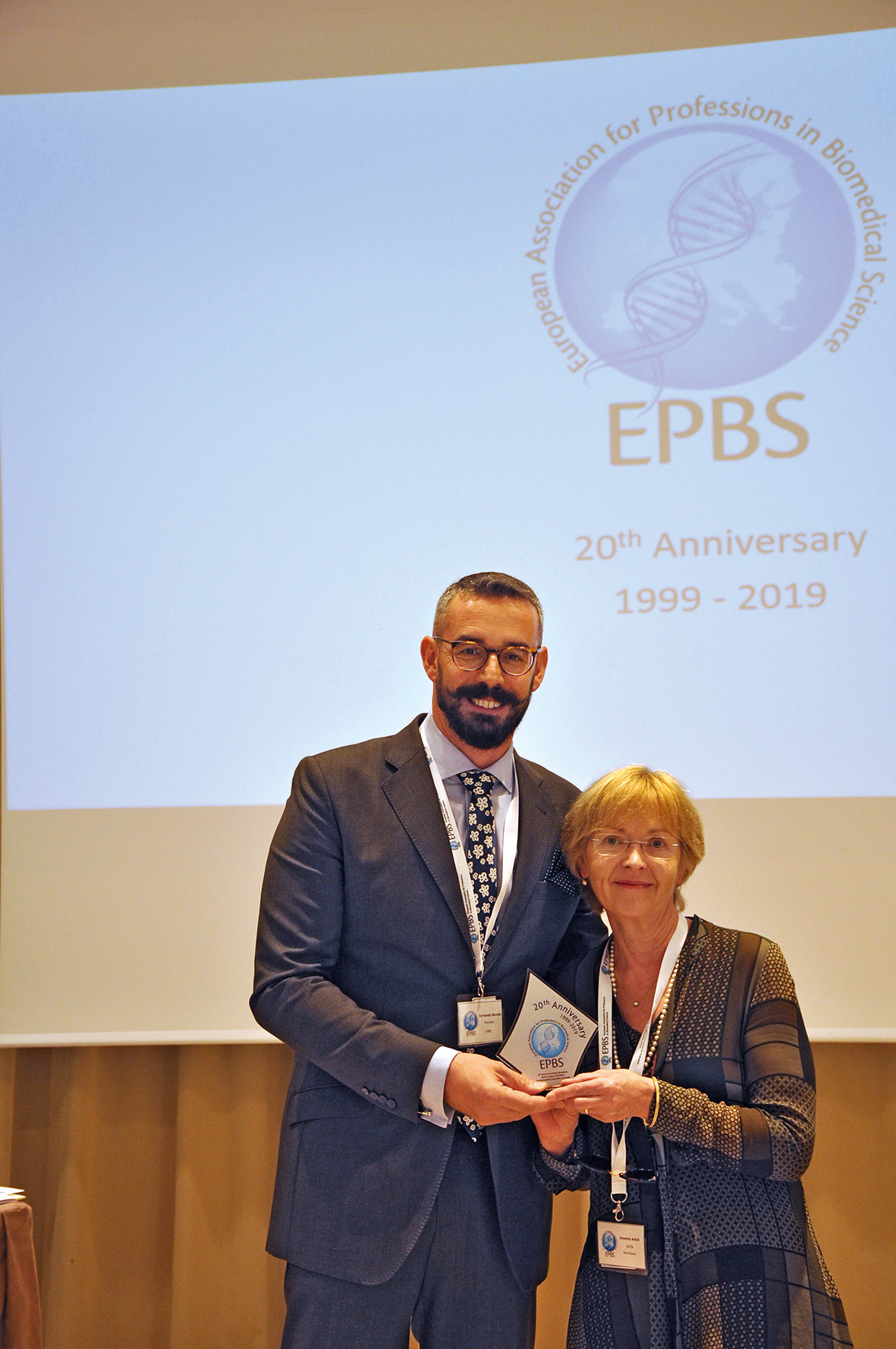 In einer Feierstunde wurden die früheren Vorstandsmitglieder gewürdigt. Wir alle waren der Einladung des EPBS gerne gefolgt. Die Preisverleihung erfolgte durch den Präsidenten Fernando Mendes. Marie Culliton, Präsidentin des EPBS von 2004 bis 2018, gab einen historischen Überblick über die Anfänge des EPBS und die Beweggründe, eine neue europäische Vereinigung zu schaffen, registriert in Brüssel, dem Sitz der Europäischen Union. Ziele des EPBS sind, die ethischen und beruflichen Werte weiterzuentwickeln, die Aus- und Weiterbildung in der biomedizinischen Analytik zu unterstützen, um die Gesundheitsversorgung zu verbessern, Praxisstandards in der biomedizinischen Analytik zu setzen, die Förderung der Zusammenarbeit zwischen den Mitgliedsgesellschaften in den Bereichen Bildung, berufliche Weiterentwicklung, Kompetenzen und Forschung, die Harmonisierung der Ausbildungen, die Zusammenarbeit mit der EU-Kommission in allen relevanten Bereichen der biomedizinischen Analytik und das Nutzen des gemeinsamen Wissens zum Wohle unserer Gesellschaften.