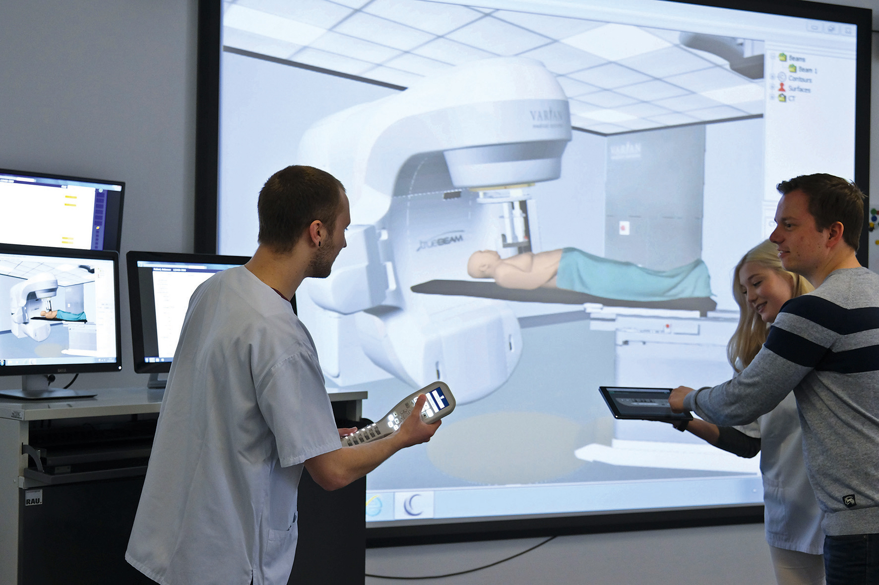 Das VERT-System (Virtual Environment Radiotherapy Training) ist eine 3-D-simulierte Trainings-, Ausbildungs- und Simulationsplattform, die den klinischen Ablauf in der Radioonkologie realistisch abbildet. Damit haben Auszubildende und Studierende die Möglichkeit, ohne das zeitliche Limit in der Klinik und stressfrei alle Teilelemente von der Planung über die CT-Simulation bis zur Bestrahlung zu lernen und praktisch zu üben. Außerdem können hiermit Situationen geübt werden, bei denen Fehler beziehungsweise Fehljustierungen simuliert werden, die in der praktischen Ausbildung an den Geräten in der Klinik nicht durchgeführt werden können.