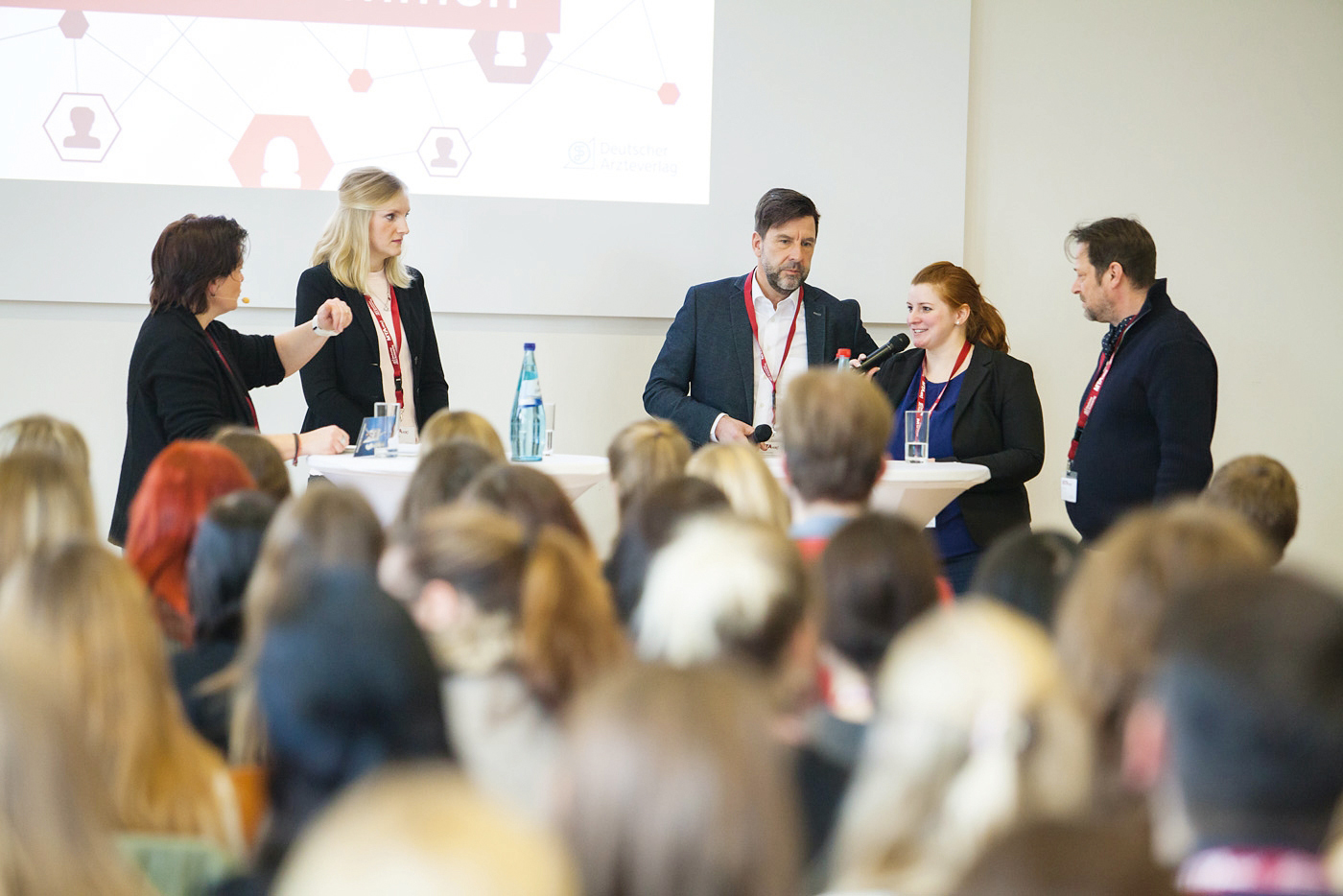 Die Veranstaltung lief parallel zum Kongress Operation Karriere (OPK) und war restlos ausgebucht. Im Rahmen der Karrieremessen OPK und MTA next gab es für die Besucher auch die Möglichkeit, sich bei potenziellen Arbeitgebern auf der Ausstellung zu informieren. Nach einer Begrüßung durch Sabine Bosch vom Deutschen Ärzteverlag und Rebecca Lauterbach, Präsidentin DVTA (R/F), sowie durch Tina Hartmann (Bereichsleitung MTA – Radiologie, Schule für Gesundheitsberufe Dortmund), schloss sich der Impulsvortrag von Stefan Schultz (medneo GmbH) an, der mit dem Fazit endete: „Es stehen Euch sämtliche Türen offen.“