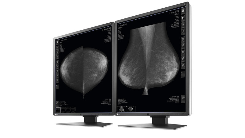 Der RadiForce GX550 zeichnet sich durch erstklassige Bildgebungsmöglichkeiten und Benutzerfreundlichkeit aus. Zur Erfüllung von radiologischen Leistungsstandards muss ein Monitor eine hohe Helligkeit aufweisen. Dies führt jedoch zu einer unvermeidbaren Verringerung von Bildschärfe. Der RadiForce GX550 verfügt jedoch über EIZOs einzigartige Unschärfereduzierung, mit der ein solcher Schärfeverlust korrigiert wird. So ist auf dem Monitor auch bei hoher Helligkeit ein originalgetreues Bild zu sehen. Das neue Design des Monitors umfasst einen dünnen, schwarzen Gehäuserahmen, der die Konzentration auf das vorliegende Bild erleichtert. Der weiße Streifen seitlich am Schirm verleiht dem Gerät eine moderne, aufgeräumte Ästhetik und trägt zu einer angenehmen, benutzerfreundlichen Umgebung bei. Um den Arbeitsplatz effizient zu nutzen, wurden Breite, Höhe und Tiefe des Monitors sehr kompakt gestaltet. Die Breite des seitlichen Gehäuserahmens beträgt lediglich 13,5 mm, wodurch der Monitor angenehm schmal ist. So kann der Benutzer bequem zwei Monitore nebeneinander betrachten und Bilder vergleichen.
