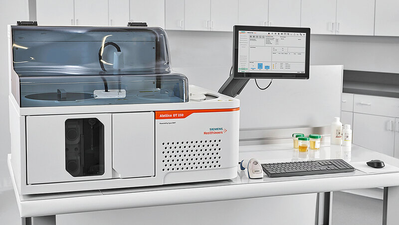 Das kompakte Tischgerät analysiere die Drogenkonzentration in Körperflüssigkeiten und unterstütze bei der Überwachung der Behandlung mit immunosuppressiven Medikamenten sowie bei toxikologischen Tests, so das Unternehmen. Automatisierte Validitätstests sollen frühzeitig verfälschte, verdünnte oder ersetzte Urinproben identifizieren. Das Atellica DT 250 Analysesystem eigne sich sowohl für den Einsatz in klinischen Bereichen wie Arztpraxen und Krankenhäusern als auch dort, wo unterschiedlich geschultes Personal das Gerät bediene, wie zum Beispiel in Therapieeinrichtungen, Schmerzambulanzen, forensischen Laboren, dem Militär und während Bewerbungsverfahren. Es könne bis zu 225 Testergebnisse pro Stunde verarbeiten, was einer Produktivitätssteigerung von 69 Prozent gegenüber dem bisherigen Viva-ProE-System von Siemens Healthineers entspreche. Erste Ergebnisse sollen bereits nach acht Minuten vorliegen. Das Gerät arbeite mit umfassend validierten Reagenzien und der bewährten Syva EMIT-Technologie. Es biete ein breites Immunoassay-Menü mit über 65 Tests für Urin-, Serum- und Plasmaproben. Zusätzlich stehen zehn offene Kanäle für individuell definierbare Tests zur Verfügung, was eine hohe Flexibilität im Einsatz ermöglichen soll. „Qualität sollte nicht verhandelbar sein, wenn bei Drogentests und der Bestimmung von Medikamentenspiegeln so viel auf dem Spiel steht“, sagte Duncan Porter, Leiter der Produktlinien Syva, Immulite und Plasma Proteins bei Siemens Healthineers.