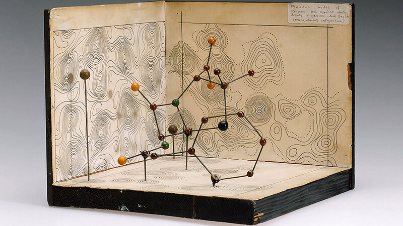 1928 entdeckte der schottische Bakteriologe Alexander Fleming, dass Schimmelpilze der Gattung Penicillium das Wachstum von Bakterien hemmen. Während des Zweiten Weltkriegs erkannte man bald den enormen Nutzen eines solchen Medikaments, denn verwundete Soldaten starben eher an Infektionen als durch feindliche Kugeln. Doch eine Synthese des neuen Medikaments war nur möglich, wenn man seine chemische Struktur kannte. 1944 hatte Hodgkin die Struktur des Penicillins aufgeklärt. Etwaige Zweifel, dass Röntgenstrahlen das Molekül verändern könnten, waren ausgeräumt. Bei einer Veranstaltung der Royal Society zum 50. Geburtstag der Entdeckung der Röntgenstrahlen wollte sie ihre Ergebnisse vorstellen, doch wegen des Krieges durfte sie aus Sicherheitsgründen darüber nicht sprechen. Später zeigte sich, dass der von ihr beschriebene Beta-Lactam-Ring für die antibakterielle Wirkung des Penicillins entscheidend ist.