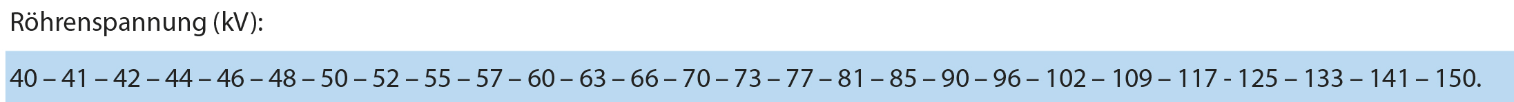 Abb. 3: Die kV-Skala (R’10) ist so gestuft, dass jede Stufe eine Erhöhung der Detektordosis um 25 % bewirkt. Damit entspricht jede Stufe 1 BP.