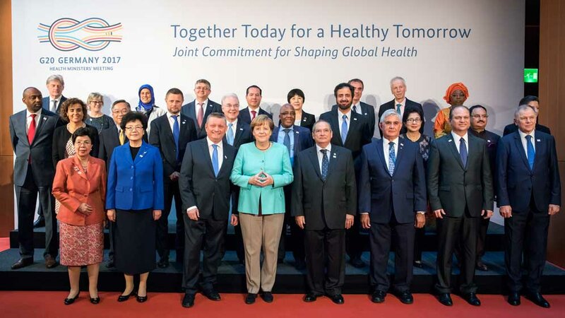 Auf Einladung von Bundesgesundheitsminister Hermann Gröhe fand am 19. und 20. Mai in Berlin das erste Treffen der Gesundheitsministerinnen und -minister der 20 führenden Industrie- und Schwellenländer (G20) statt. Im Mittelpunkt der zweitägigen Tagung unter dem Motto "Together Today for a Healthy Tomorrow - Joint Commitment for Shaping Global Health" stand die Bekämpfung globaler Gesundheitsgefahren. Außerdem wurde die "Berliner Erklärung der G20- Gesundheitsminister" verabschiedet.